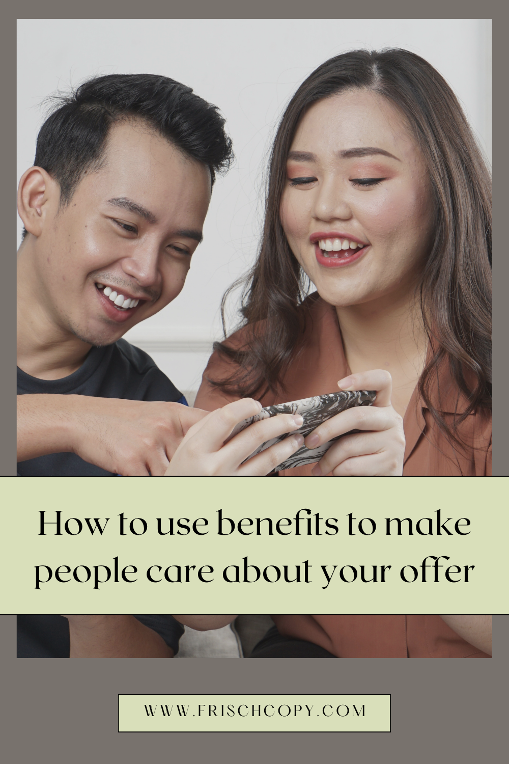 As you write about your offer, think about how to approach talking about the benefits too. Will they respond better if you present your benefits as something they get to experience or a problem they get to avoid?